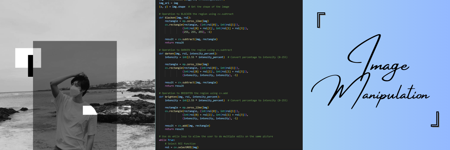 ✨Image Manipulation by darkening, brightening, and blacken the region of interest of an image.